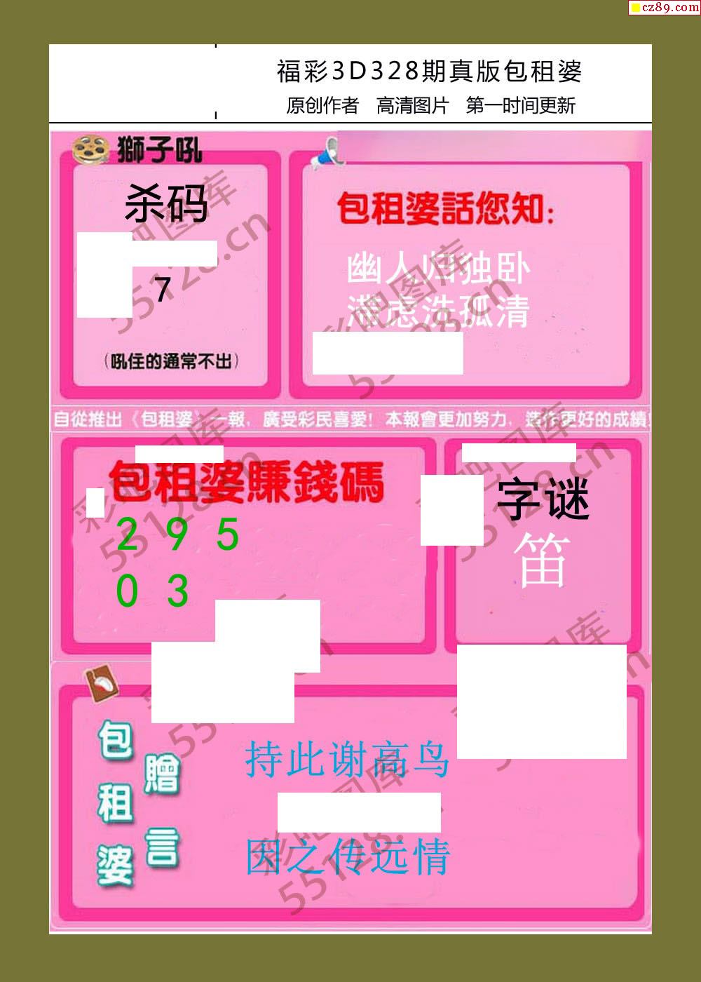 首页 > 福彩3D图谜 > 25年328期福彩包租婆3d彩报