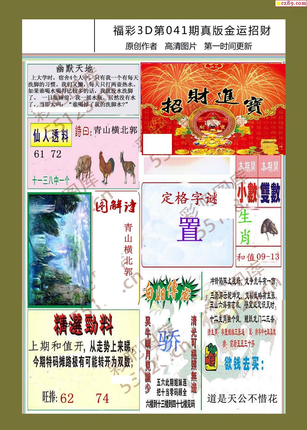 26年041期福彩3d金运招财画迷