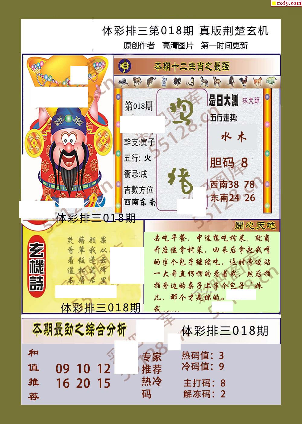 荆楚玄机018期体彩p3图谜