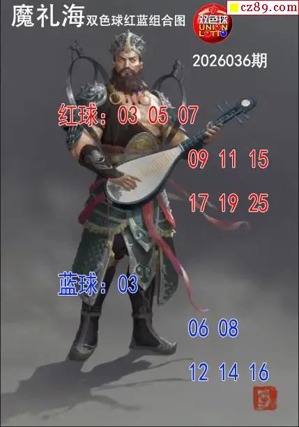 双色球2026年图迷036期 礼海红蓝组合图