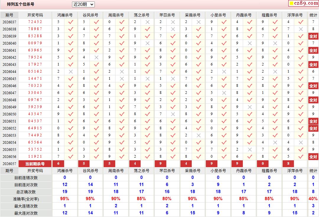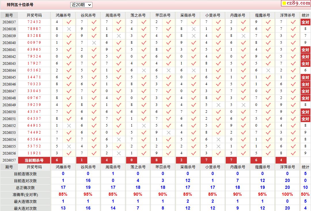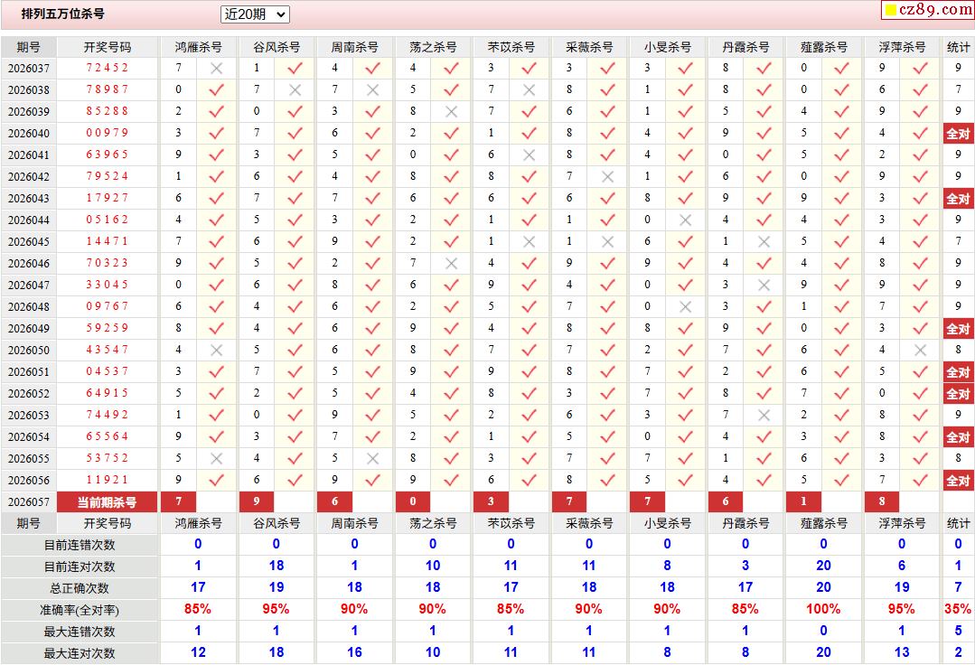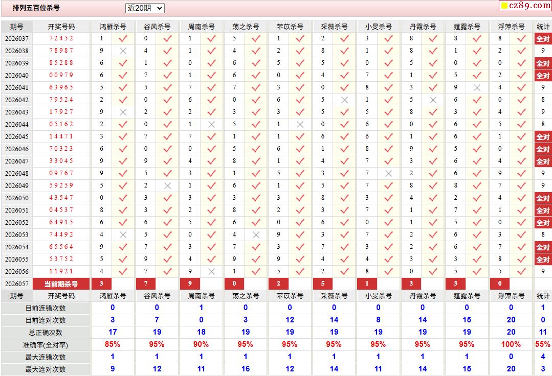 057期彩票专家体彩P5杀号推荐图表